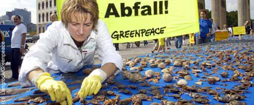 Greenpeace-Action in Berlin against Bycatch: Under the headline Life is not rubbish ( "Leben ist kein Abfall") Greenpeace filled the area before the Brandenburger Tor with bycatch from 2 hrs of fishing in the North Sea: 11,000 animals on a 100 m long table....